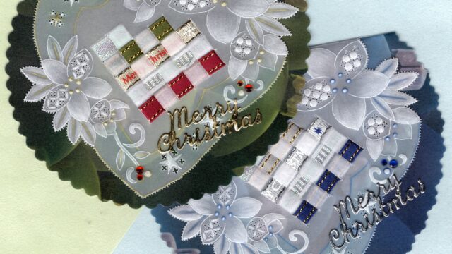 最新 クリスマスローズの編み込みカード