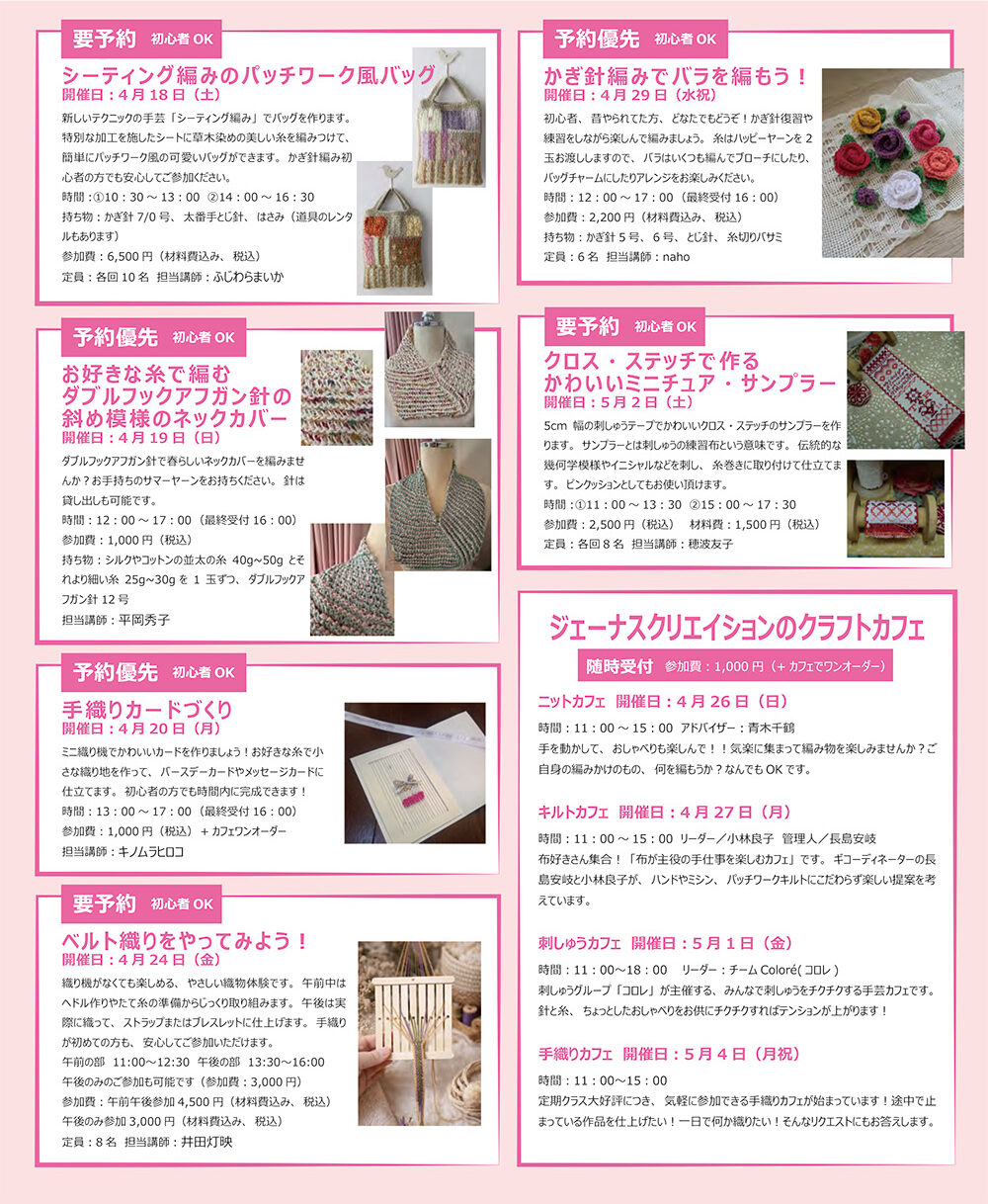 ニットカフェに刺しゅうカフェ、キルトカフェも開催中!